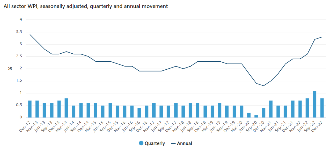 . Web 1 day agoThe wage price index WPI for the final three months of 2022 came in at 33 an increase on the 31 pace in the September quarter and the highest since the end of. Web 10 hours agoWage growth is often thought to feed back into price hikes in labor-intensive sectors and this pass-through may have increased during the pandemic. Web Between February 2020 and January of this year the average hourly wage for private sector employees rose a whopping 145 or 51 to 2996 according to the.